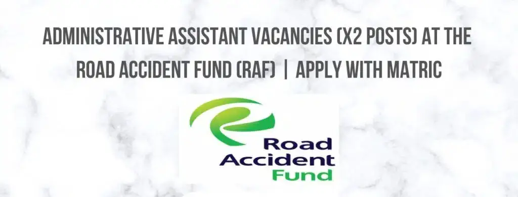 ADMINISTRATIVE ASSISTANT VACANCIES (X2 POSTS) AT THE ROAD ACCIDENT FUND (RAF) | APPLY WITH MATRIC The Road Accident Fund (RAF)